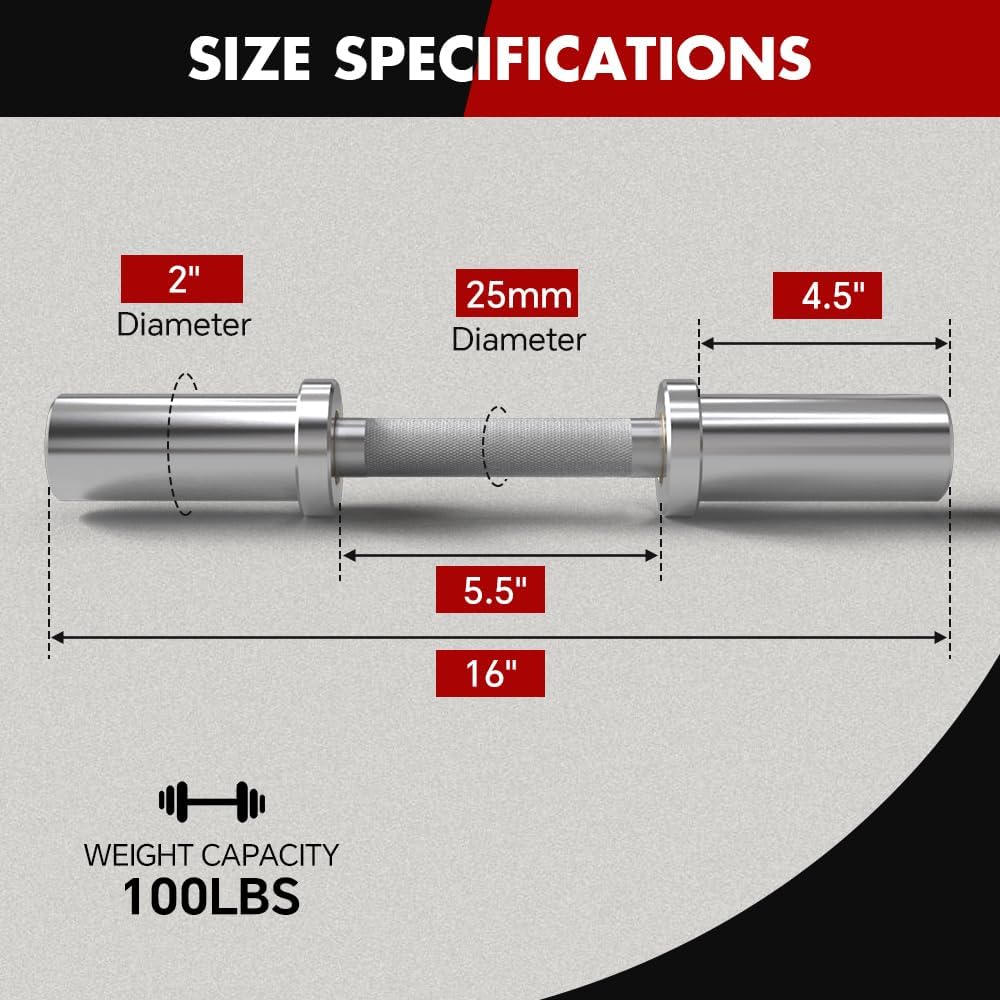 Sturdy Construction: These dumbbell bars are made of top-notch solid steel, provide reliable quality that will not break, and can hold weights up to 100 LB. The well-plated chrome finish protects the bar from rust and corrosion, as well as gives a nice, sleek appearance, meet all your weight lifting needs.